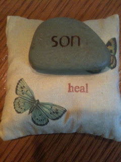 I’ve been living with a stone for a long time. See how it rests on a little silk pillow called heal. The stone and the pillow are both comforting and calming.