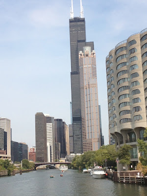 We all went to breakfast afterward and then Dina and her husband, John, and my husband, Bob, and I took an hour-long architectural cruise on the Chicago River. The architecture is wonderful the tour guide not so much. I felt like he was doing an hour-long non-stop performance piece. He even played harmonica for us at the end. Plus it was very hot.