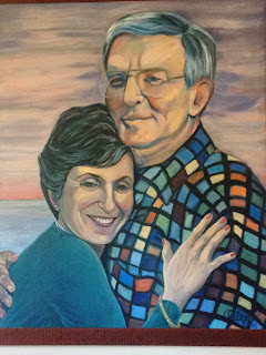 We went up Friday night in time to hear Richard drumming with his jazz trio at a local Ojai restaurant. Besides being a drummer he’s a sculptor, mostly of aging men. Alice, a painter, has her work at the Smithsonian portrait gallery. Her commissioned painting of Chelsea Clinton once hung in the White House private residence. Our portrait by Alice hangs prominently in our home.